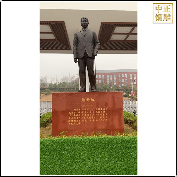 湖南工業(yè)大學(xué)陶瓷學(xué)院門前的這尊高3.8米的熊希齡人物銅雕塑,是由河北中正銅工藝品制作有限公司制作而成,這尊熊希齡人物銅雕塑高3.8米,底座高2米,總高5.8米。從最初圖紙?jiān)O(shè)計(jì)到安裝完成,總共歷時(shí)2個(gè)月時(shí)間,安裝完成后得到了院長和眾多老師的一致好評(píng)。